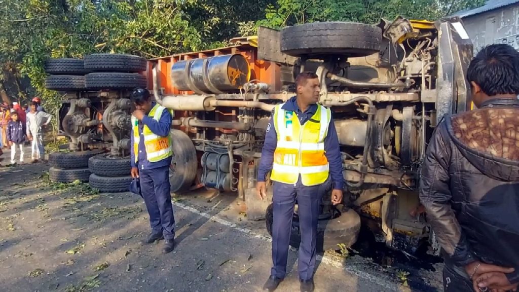 রোববার (৯ জানুয়ারি) সকাল সাড়ে ৭টার দিকে এ ঘটনা ঘটে। মাধপুর হাইওয়ে পুলিশ ফাঁড়ির ভারপ্রাপ্ত কর্মকর্তা ওসি আবুল কাশেম ঘটনার সত্যতা নিশ্চিত করে জানান, সকালে রবিউল ও মোমিন দু’জন একটি ভ্যান গাড়িতে করে যাচ্ছিল। পুটিগারা নামকস্থানে হঠাৎ তাদের বহনকারী ভ্যান ভেঙে রাস্তায় পড়ে যায়। এসময় পেছন থেকে একটি মালবাহী ট্রাক তাদের চাপা দিলে ঘটনাস্থলেই একজন এবং হাসপাতালে নেয়ার পথে আরেক জন মারা যান। পুলিশ ঘাতক ট্রাকটিকে আটক করেছে।