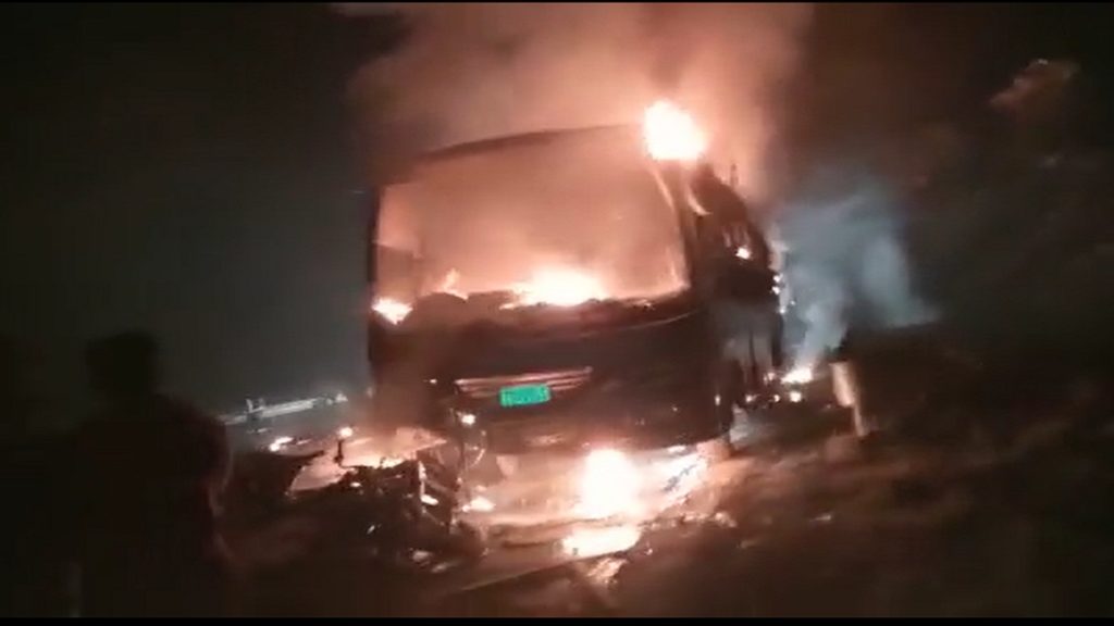 এ ঘটনায় মাদারীপুর-শরিয়তপুর-চাঁদপুর মহাসড়ক অবরোধ করে এলাকাবাসী। এ সময় বিক্ষুব্ধ জনতা ঘাতক বাসে আগুন ধরিয়ে দেয়। এতে বাসটি পুড়ে যায়। খবর পেয়ে ঘটনাস্থলে গিয়ে পরিস্থিতি নিয়ন্ত্রণে আনে ফায়ার সার্ভিস ও পুলিশ। বেপরোয়া গতির কারণেই এ দুর্ঘটনা বলে অভিযোগ এলাকাবাসীর।
