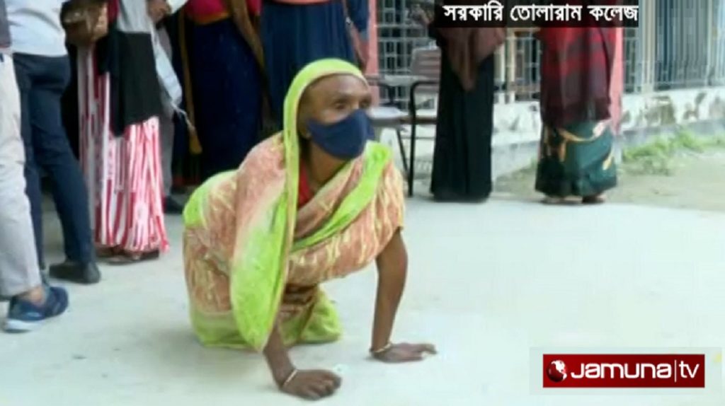 নারায়ণগঞ্জ সিটি করপোরেশনের তোলারাম কলেজের নারী কেন্দ্রে একজন ভোটারের দেখা মিলেছে। যিনি শারীরিক সক্ষমতার ধরনে বিশেষ হওয়া সত্ত্বেও হামাগুড়ি দিয়ে নাগরিক দায়িত্ব পালন করতে ভোটকেন্দ্রে এসেছেন।