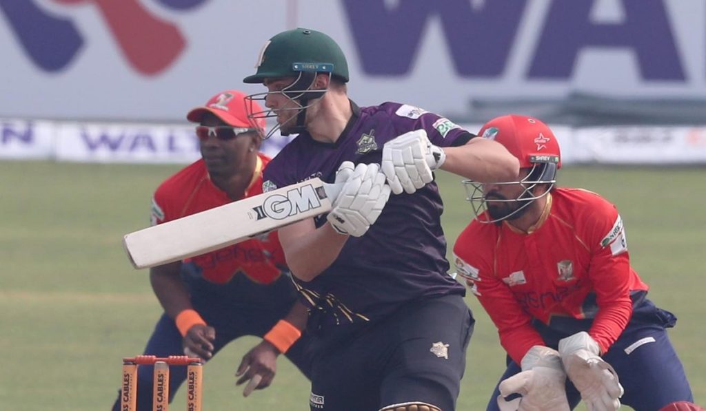 টস হেরে ব্যাট করতে নেমে শুরুতেই ছয় দিয়ে শুরু করেন চট্টগ্রাম চ্যালেঞ্জার্সের ক্যারিবিয় ওপেনার কেনার লুইস। তবে নাইম হাসানের ৩য় বলে আবারও ছক্কা হাঁকাতে গিয়ে নাজমুল শান্তর হাতে ক্যাচ দিয়ে ফেরেন লুইস। এরপর আলজারি জোসেফের প্রথম বলেই উইকেটে পেছনে ক্যাচ দিয়ে ফেরেন ৬ রান করা আফিফ হোসেন। ভালো শুরুর আভাস দিয়ে দ্রুত ফিরে গেছেন সাব্বির রহমানও। দলীয় ৩৩ রানে সাকিবের বলে আউট হবার আগে তার ব্যাট থেকে আসে ৮ রান। এরপর ইংলিশ ব্যাটার উইল জ্যাকস প্রতিরোধের চেষ্টা করেও সফল হননি। ১৬ রান করে আরেক ইংলিশ বোলার জ্যাক লিনটটের শিকার হয়ে ফেরেন তিনি।