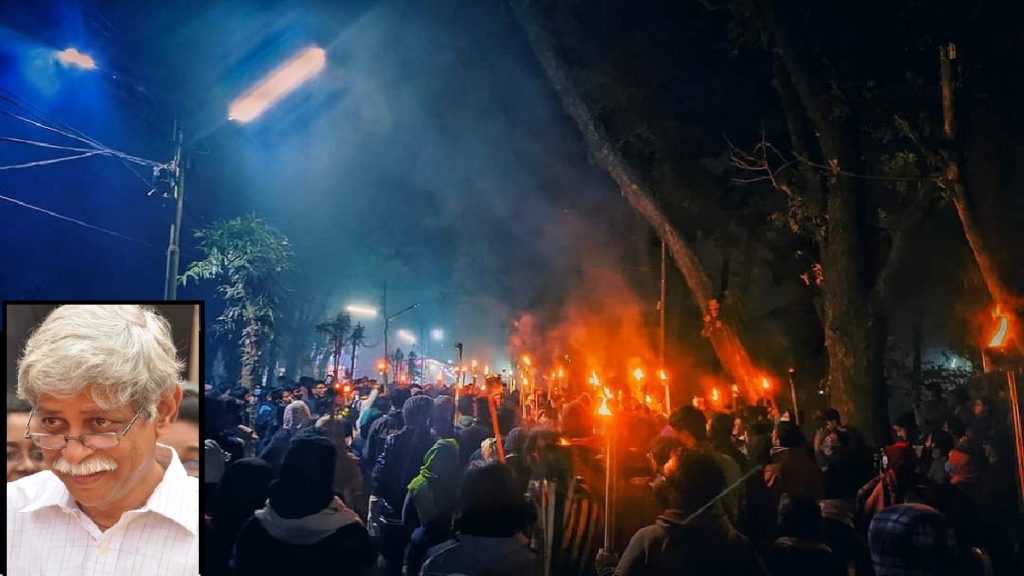 এক দিকে ছাত্রছাত্রী অন্যদিকে ভাইস চ্যান্সেলরের নেতৃত্বে সকল শিক্ষক। ছাত্রছাত্রীদের দাবি খুবই চাঁচাছােলা। এটাকে মােলায়েম করার কোনাে উপায় নেই। যেহেতু নির্দয় পুলিশি হামলা করার লজ্জাটুকু কেটে গেছে তাই যদি দ্বিতীয়বার সেটাকে প্রয়ােগ করে ছাত্রছাত্রীদের আন্দোলন বন্ধ না করা যায় এটার একটা শান্তিপূর্ণ সমাধানের কোনাে উপায় নেই।