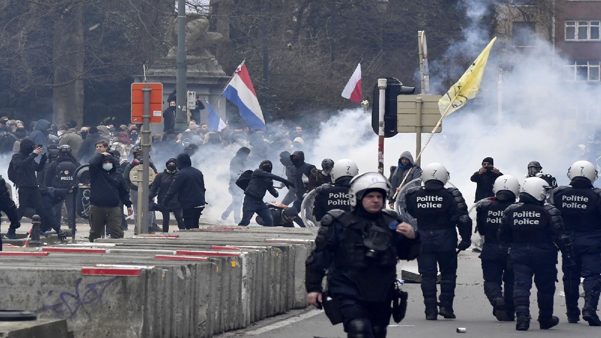 করোনা বিধিনিষেধ বিরোধী আন্দোলনে রণক্ষেত্র বেলজিয়াম