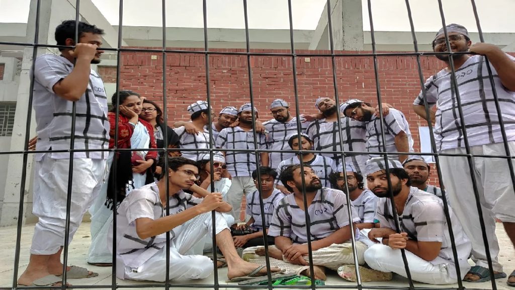 স্নাতক জীবনের শেষ ক্লাসে কয়েদির পোশাকে হাজির হয়েছিলেন খুলনা প্রকৌশল ও প্রযুক্তি বিশ্ববিদ্যালয়ের যন্ত্রকৌশল বিভাগের ১৬ ব্যাচের শিক্ষার্থীরা। তাদের এমন ব্যতিক্রম আয়োজনের ছবি সামাজিক যোগাযোগ মাধ্যমে নিমিষেই ভাইরাল হয়ে যায়। আর তাদের এই বিষয়টি নিয়ে চলছে নানা আলোচনা-সমালোচনা।