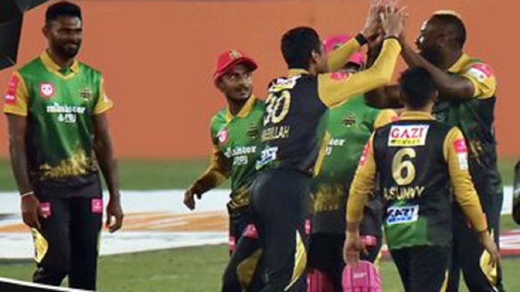 দলের কঠিন মুহূর্তে হাল ধরেন অধিনায়ক মাহমুদউল্লাহ ও শুভাগত হোম। দুজনের পার্টনারশিপ থেকে আসে ৬৯ রান। ২৯ রান করে শুভাগত ফিরলেও শেষদিকে আন্দ্রে রাসেলের ১৫ বলে ৩১ রানের ঝড়ো ইনিংসে জয় নিশ্চিত হয় ঢাকার।