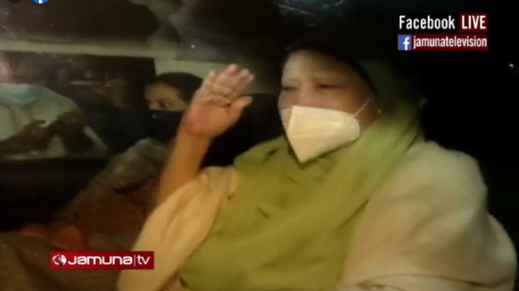 সাবেক প্রধানমন্ত্রী ও বিএনপি চেয়ারপারসন বেগম খালেদা জিয়া তার গুলশানের বাসা ফিরোজায় ফিরেছেন। ২ মাস ১৯ দিন পর হাসপাতাল থেকে তিনি বাসায় ফেরেন মঙ্গলবার (১ ফেব্রুয়ারি) রাত ৮ টা ৪০ মিনিটের দিকে। এর আগে রাজধানীর এভারকেয়ার হাসপাতালে দীর্ঘদিন ধরে চিকিৎসাধীন বিএনপির এই নেত্রী সন্ধ্যা ৭টা ২০ মিনিটের দিকে হাসপাতাল থেকে ছাড়া পেয়েছেন।