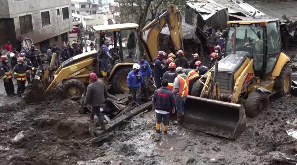 টানা বৃষ্টির জেরে সোমবার ভয়াবহ ভূমিধস হয় রাজধানী কুইটোর উত্তরাঞ্চলে। পাহাড়ি এলাকা থেকে পাথর গড়িয়ে পড়ে নিম্নভূমিতে। বিধ্বস্ত হয় বেশ কয়েকটি বাড়িঘর। উপড়ে পড়ে বহু গাছ ও বিদ্যুতের খুঁটি। বিদ্যুৎবিচ্ছিন্ন হয়ে পড়ে বিস্তীর্ণ এলাকা। এখনও বর্ষণ অব্যাহত উত্তরাঞ্চলীয় বিভিন্ন এলাকায়।