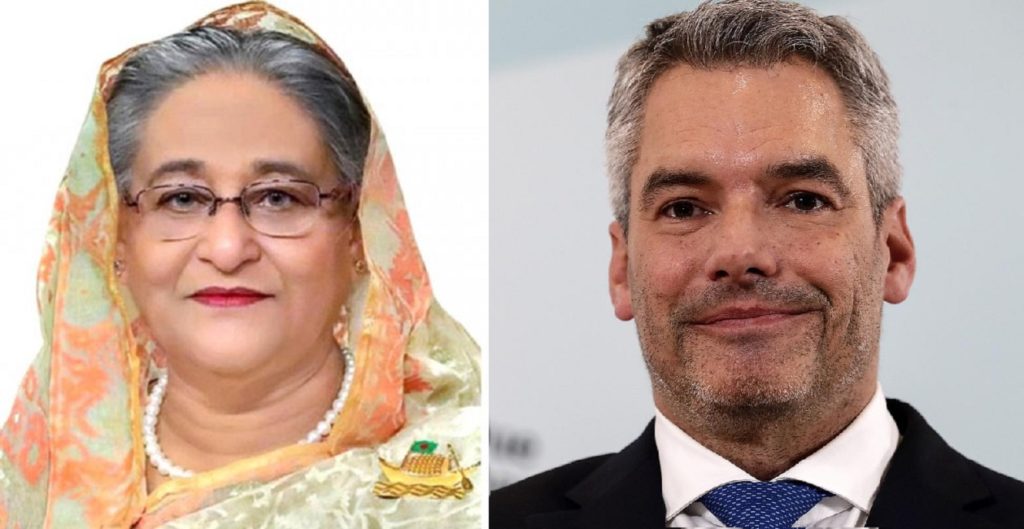 অস্ট্রিয়া-বাংলাদেশের কূটনৈতিক সম্পর্কের সুবর্ণজয়ন্তী উপলক্ষ্যে বাংলাদেশের প্রধানমন্ত্রী শেখ হাসিনাকে টেলিফোন করে শুভেচ্ছা বিনিময় করেছেন অস্ট্রিয়ার চ্যান্সেলর কার্ল নেহাম্মার। এসময় দুই দেশের সরকার প্রধানের মধ্যে বিভিন্ন বিষয়ে ১০ মিনিটের মতো কথা হয়।