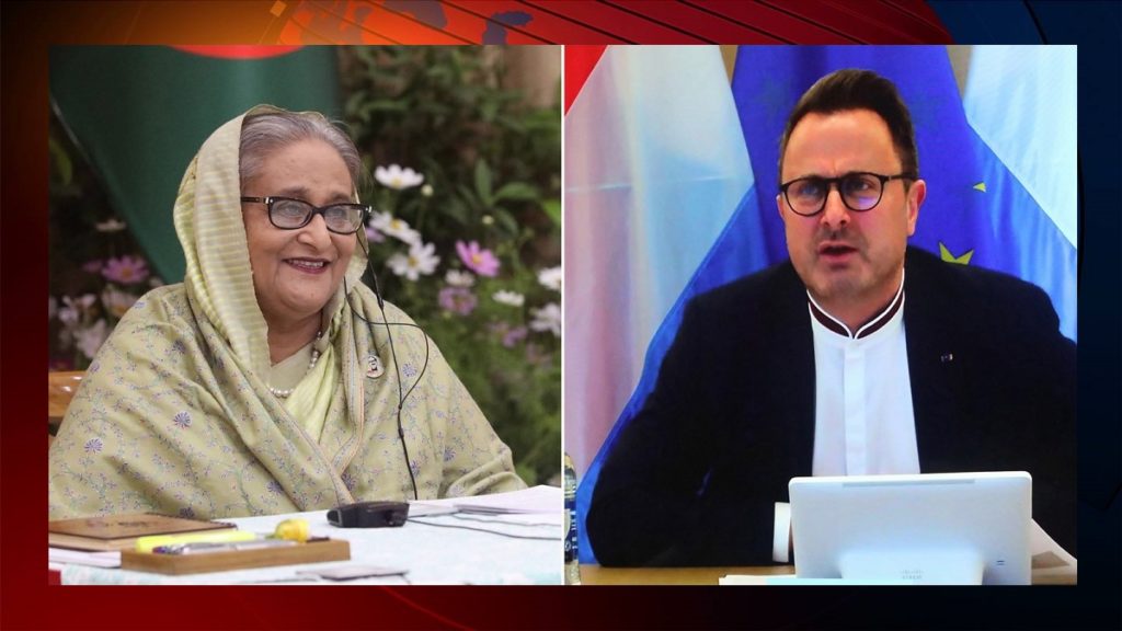 বাংলাদেশ-লুক্সেমবার্গ এর কূটনৈতিক সম্পর্কের ৫০ বছর উপলক্ষে এবং সর্বত্র বন্ধুত্বপূর্ণ সহযোগিতা বজায় রাখার জন্য দুই দেশের প্রধানমন্ত্রীর মধ্যে ভিডিও কনফারেন্সের মাধ্যমে কথা হয়েছে। এ সময় প্রধানমন্ত্রী শেখ হাসিনা বাজেটে সহায়তা এবং ভ্যাকসিন দানের মাধ্যমে মহামারির প্রভাব কমাতে বাংলাদেশকে সহায়তা করার জন্য ‘টিম ইউরোপ’কে ধন্যবাদ জানান। অন্যদিকে, রোহিঙ্গাদেরকে তাদের মাতৃভূমি মিয়ানমারে প্রত্যাবাসনের বিষয়ে বাংলাদেশকে সহযোগিতা অব্যাহত রাখার আশ্বাস পুনর্ব্যক্ত করেছেন লুক্সেমবার্গের প্রধানমন্ত্রী জেভিয়ার বেটেল।