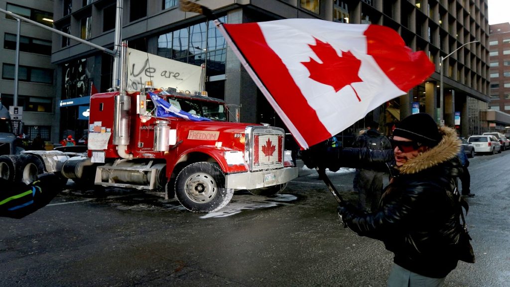 গত নয়দিন ধরে করোনা বিধিনিষেধের বিরুদ্ধে ট্রাকচালকদের বিক্ষোভের কারণে কানাডার রাজধানী অটোয়ায় জারি করা হয়েছে জরুরি অবস্থা।