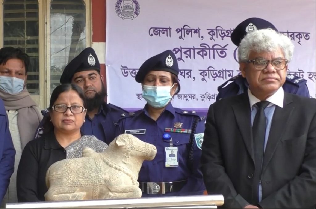 কুড়িগ্রামের নাগেশ্বরী উপজেলার নেওয়াশি ইউনিয়নের বামনটারী গ্রামে পুরাতন মন্দিরের ধ্বংসাবশেষ থেকে উদ্ধারকৃতি কথিত কষ্টিপাথরের গো-মূর্তিটি আদালতের মাধ্যমে কুড়িগ্রামে অবস্থিত উত্তরবঙ্গ জাদুঘরে হস্তান্তর করা হয়েছে।