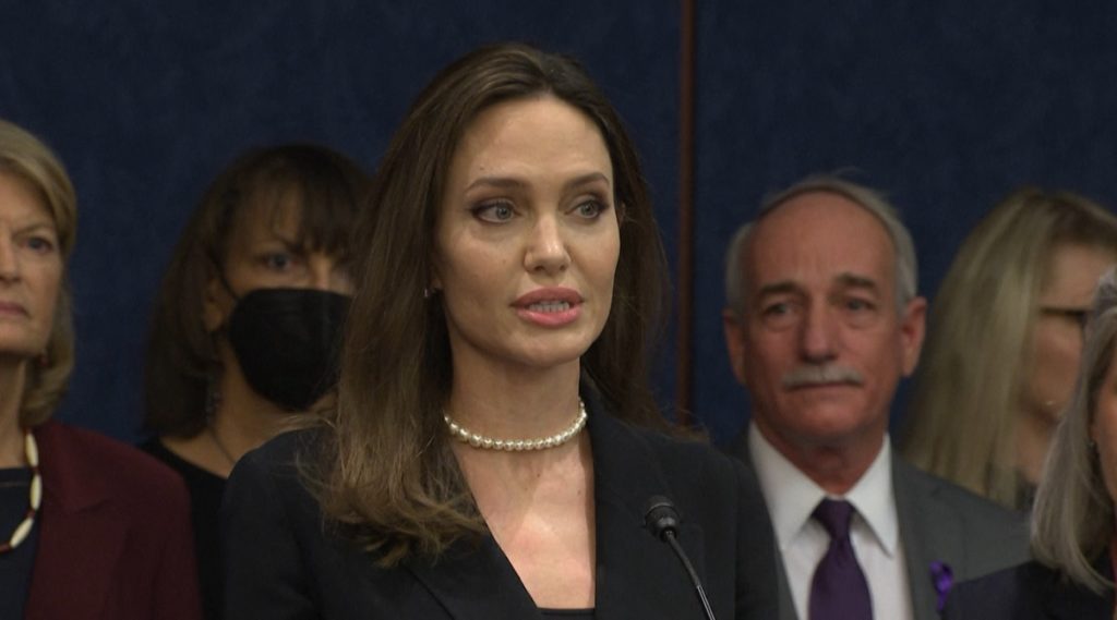 নারীর প্রতি সহিংসতা বিরোধী আইন ফিরিয়ে আনার দাবিতে আওয়াজ তুলেছেন হলিউড অভিনেত্রী অ্যাঞ্জেলিনা জোলি। রিপাবলিকান সিনেটরদের আয়োজিত এক সংবাদ সম্মেলনে যোগ দিয়ে আইনটির পক্ষে কথা বলতে গিয়ে আবেগতাড়িত হয়ে পড়েন তিনি।