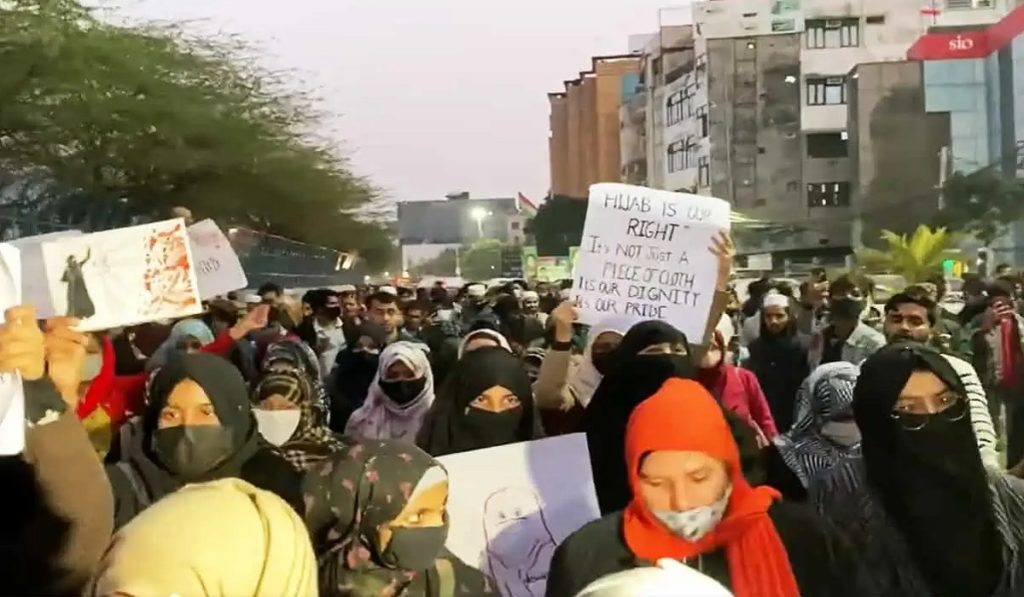 হিজাব ইস্যুতে ভারতজুড়ে ব্যাপক তোলপাড় শুরু হয় গত মঙ্গলবার। কর্নাটকে মুসলিম ছাত্রী মুসকান বোরকা পড়ে কলেজে ঢুকতে গেলে হেনস্তার শিকার হন। এই ঘটনা নিয়ে বিক্ষোভকারী ফারহিন আক্তার বলেন, আমি বুঝতে পারছি না শিক্ষার সাথে কেন হিজাবকে টানা হচ্ছে। শিক্ষা প্রতিষ্ঠানের এমন আচরণ খুবই লজ্জাজনক। আর সরকারই বা কেন কিছু ভাবছে না এটি নিয়ে! কর্নাটকের শিক্ষার্থীরা হিজাব পরে ক্লাসে গেলে তাদের কেন আলাদা বসতে দেয়া হচ্ছে?