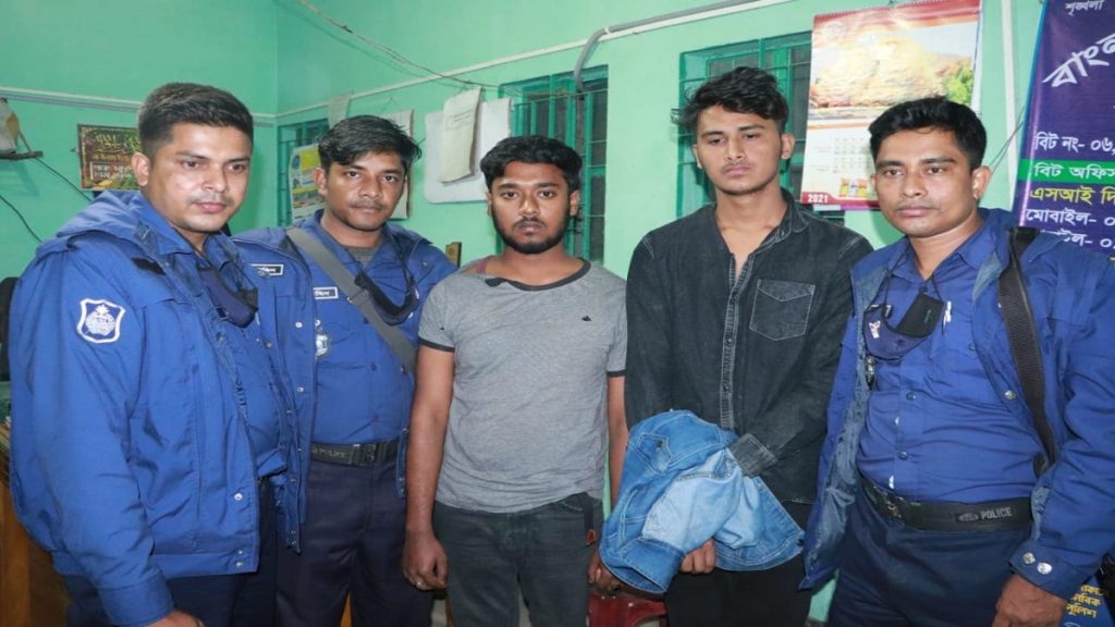 বৃহস্পতিবার (১০ ফেব্রুয়ারি) দুপুরে উপজেলার ছয়ানী ইউনিয়নের খোয়াজপুর নামক স্থান থেকে তাদের গ্রেফতার করা হয়। এসময় পিস্তল, চাইনিজ কুড়াল, ফোল্ডিং ছুরি, চকলেট বোমা, দুইটি চাকু ও দুইটি ব্যাটন লাঠি উদ্ধার করেছে পুলিশ। গ্রেফতারকৃতরা হলো, মো. কাউসার (২০) ও মো. সায়েম (১৯)।