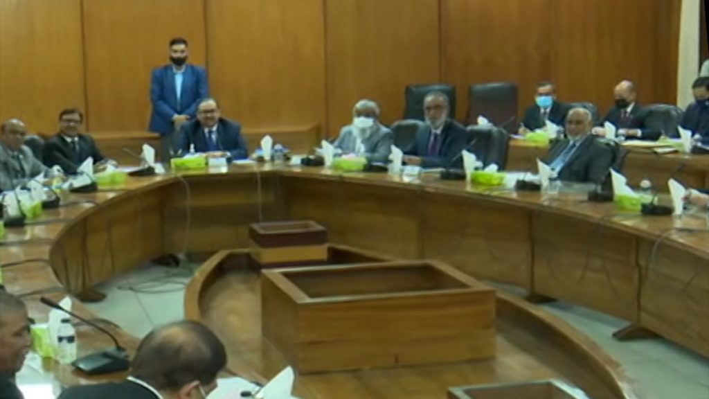 সুপ্রিম কোর্টের জাজেস লাউঞ্জে প্রথম দফার এই বৈঠকে অংশ নিয়েছেন সাবেক অ্যাটর্নি জেনারেল এ এফ হাসান আরিফ, সুপ্রিম কোর্টের সিনিয়র আইনজীবী ফিদা এম কামাল, সাবেক মন্ত্রিপরিষদ সচিব আলী ইমাম মজুমদার, সিনিয়র আইনজীবী ইউসুফ হোসেন হুমায়ুন, ড. শাহদীন মালিক, ড. আসিফ নজরুল।