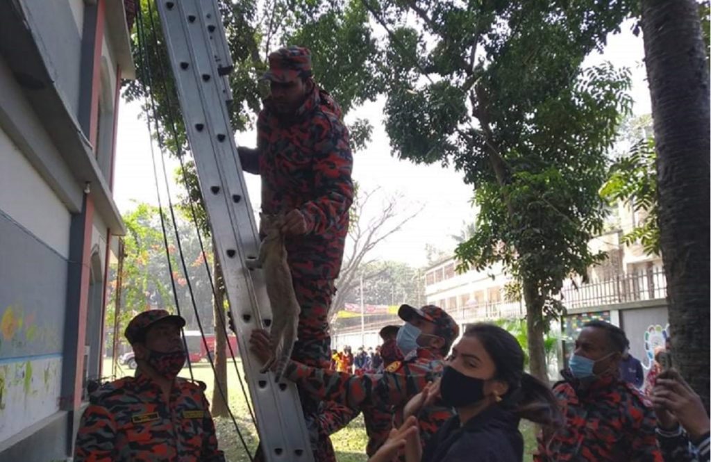 স্থানীয়রা জানান, এক সপ্তাহ ধরে বিড়ালটি ওই ভবনের সানশেডে আটকে ছিল। পরে পাশের ভবনে থাকা ওয়াহিদ আকরাম সুবিন নামের এক ব্যক্তি শুক্রবার বিকেলে ফায়ার সার্ভিসের সাথে যোগাযোগ করেন। অনেক অনুরোধের পরও বিড়ালটি উদ্ধারে ফায়ার সার্ভিস কর্তৃপক্ষের কোনো সাড়া পাওয়া যায়নি।