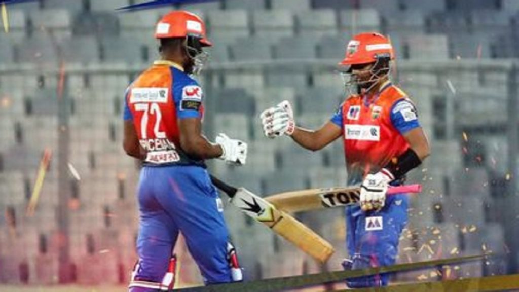 মিরপুরে প্রথমে টস জিতে ব্যাটিং বেছে নেয় কুমিল্লা। এই ম্যাচে ছিলেন না দলটির নিয়মিত অধিনায়ক ইমরুল কায়েস। ম্যাচে অধিনায়কত্ব করেন ডু প্লেসিস। ছিলেন না ওপেনার লিটন দাসও। কুমিল্লার ইনিংসে দলীয় ৩১ রানেই ফিরে যান দুই টপঅর্ডার ব্যাটসম্যান পারভেজ হোসাইন ইমন ও মুমিনুল হক। এরপর ২৭ বলে ৩১ রান করে বিদায় নেন ওপেনিংয়ে নামা মাহমুদুল হাসান জয়ও। তবে একপ্রান্ত আগলে ছিলেন চারে ব্যাট করতে নামা ডু প্লেসি। শেষ পর্যন্ত তার ৫৪ বলে ১০১ রানেই ১৮২ রানের বিশাল সংগ্রহ তোলে কুমিল্লা।