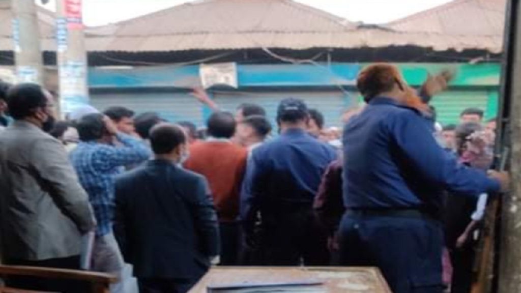 চটের বস্তার পরিবর্তে অবৈধ প্লাস্টিকের মোড়কে চাল বিক্রির বিরুদ্ধে অভিযানে গেলে মোবাইল কোর্টের ওপর হামলা চালায় বাজারের ব্যবসায়ীরা। এ সময় নির্বাহী ম্যাজিস্ট্রেটসহ অন্যান্যদের প্রায় ১ ঘণ্টা অবরুদ্ধ করে রাখা হয়। এ হামলায় মোবাইল কোর্টের অন্তত চার জন আহত হয়।