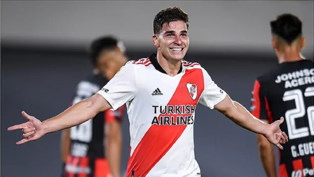হ্যাটট্রিক করে ম্যানচেস্টার সিটিতে যোগ দেয়া উদযাপন করলেন আর্জেন্টাইন তারকা জুলিয়ান আলভারেজ। আর্জেন্টিনার ঘরোয়া লিগে রিভার প্লেটের হয়ে পাট্রোনাটোর বিপক্ষে হ্যাটট্রিক করেন তিনি।