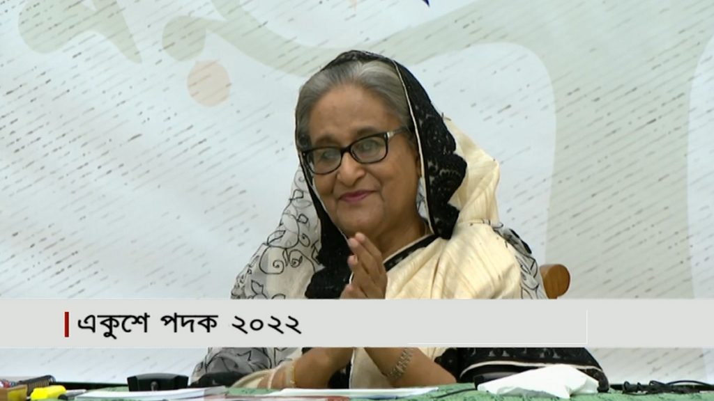রোববার (২০ ফেব্রুয়ারি) সকালে রাজধানীর ওসমানী স্মৃতি মিলনায়তনে ‘একুশে পদক-২০২২’ প্রদান অনুষ্ঠানে প্রধানমন্ত্রী শেখ হাসিনা এ মন্তব্য করেন। বিভিন্ন ক্ষেত্রে গুরুত্বপূর্ণ অবদানের স্বীকৃতিস্বরূপ দেশের ২৪ জন বিশিষ্ট নাগরিককে এবার পদক প্রদান করা হয়। পুরস্কার প্রদান শেষে প্রধানমন্ত্রী বলেন, ধাপে ধাপে জাতিকে মুক্তির পথে এগিয়ে যাবার জন্য নেতৃত্ব দিয়েছেন বঙ্গবন্ধু শেখ মুজিবুর রহমান। ভাষার স্বাধীনতার জন্য নেতৃত্বের পাশাপাশি জনমত তৈরিতেও কাজ করেছেন তিনি। অনুষ্ঠানে পদকপ্রাপ্ত ব্যক্তিদের অনুসরণ করে সমাজে অবদান রাখতে তরুণ প্রজন্মের প্রতি আহ্বান জানান প্রধানমন্ত্রী।
