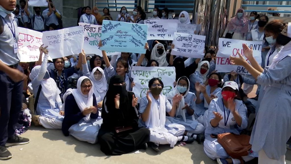 অবিলম্বে শিক্ষকদের কর্মক্ষেত্রে পুনর্বহালের দাবি জানিয়ে শিক্ষার্থীরা অভিযোগ করেন, বিষয়টি নিয়ে বারবার কলেজ কর্তৃপক্ষের সঙ্গে আলোচনা করতে চাইলেও তাদের সেই সুযোগ দেয়া হয়নি।