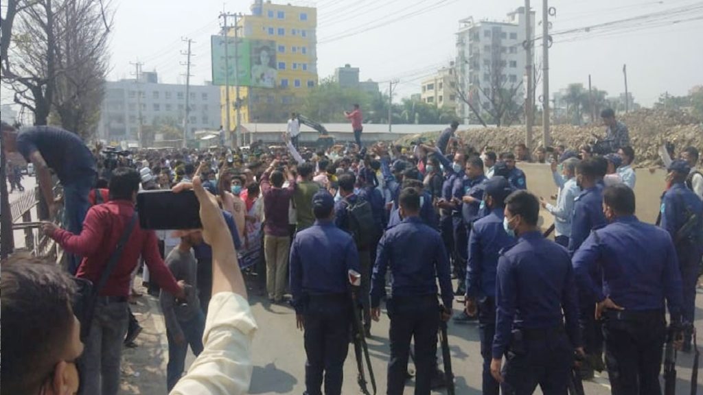 সমাবেশ শেষে রুহুল কবির রিজভীসহ নেতাকর্মীরা একটি বিক্ষোভ মিছিল নিয়ে ঢাকা-আরিচা মহাসড়ক ওঠে। এসময় পুলিশ তাদের মহাসড়ক থেকে সরে যেতে বললে বিএনপির নেতাকর্মীরা পুলিশকে লক্ষ্য করে ইটপাটকেল নিক্ষেপ করে৷ পরে পুলিশ ধাওয়া দিয়ে তাদের ছত্রভঙ্গ করে দেয় এবং দুজনকে আটক করে। সমাবেশ শেষে বিক্ষোভ মিছিল পণ্ড হয়ে গেলে রুহুল কবির রিজভী ঢাকায় ফিরে যান।
