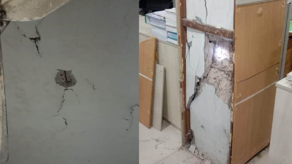রোববার (৬ মার্চ) বিকেলে হঠাৎ করেই ঐ ভবনের তৃতীয় তলায় একটি পিলারসহ দেয়ালের বেশ কিছু জায়গা থেকে পলেস্তারা খসে পড়ে। একসময় পিলারের রড বেরিয়ে বেঁকে যায়।
