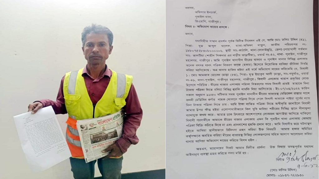সোমবার (৭ মার্চ) সকালে নগরীর পুবাইল মীরের বাজার এলাকায় পত্রিকা বিতরণ করার সময় এই ঘটনা ঘটে।
