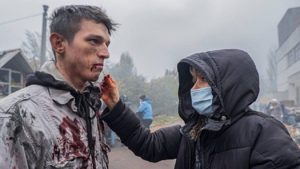 ১। সংকটের অভিনয়: একজন নারী এবং পুরুষ এঁকে অপরের মুখে এমনভাবে রং মেখে দিচ্ছে যেন তা দেখতে একদম রক্তের মতোই মনে হয়।। এমন ছবি অনলাইনে শেয়ার হয়েছে কয়েক মিলিয়ন এবং দাবি করা হয়েছে, বেসামরিক মানুষরা ইউক্রেনে হতাহত হচ্ছেন না। তারা কেবল অভিনয় করছেন।
