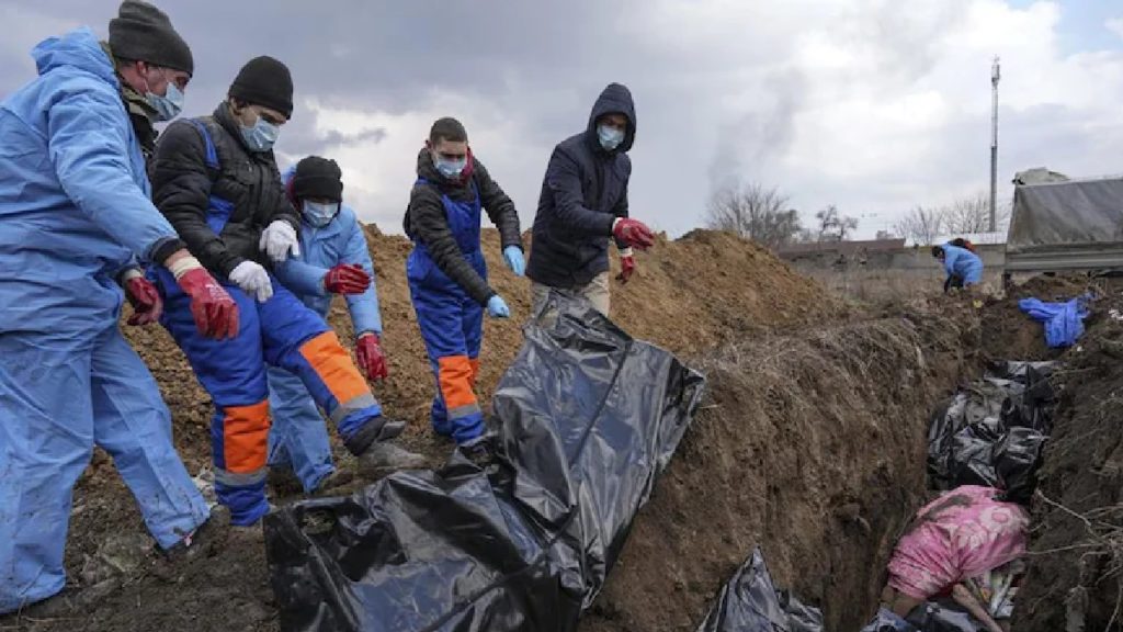স্মরণকালের মধ্যে সবচেয়ে বড় মানবিক বিপর্যয় চলছে ইউরোপের দেশ ইউক্রেনে। গণমাধ্যমের খবরে দেখা যায়, ২৫ মিটার দীর্ঘ একটি কবর খোঁড়া হয়েছে, যার পাশে কবরে একের পর এক স্তুপ করে রাখা হচ্ছে মরদেহ। কিছুক্ষণ পরপরই স্বেচ্ছাসেবী কিংবা স্বজনরা নিয়ে আসছে মরদেহ। এভাবেই যুদ্ধবিধ্বস্ত ইউক্রেনে দেয়া হচ্ছে গণকবর।