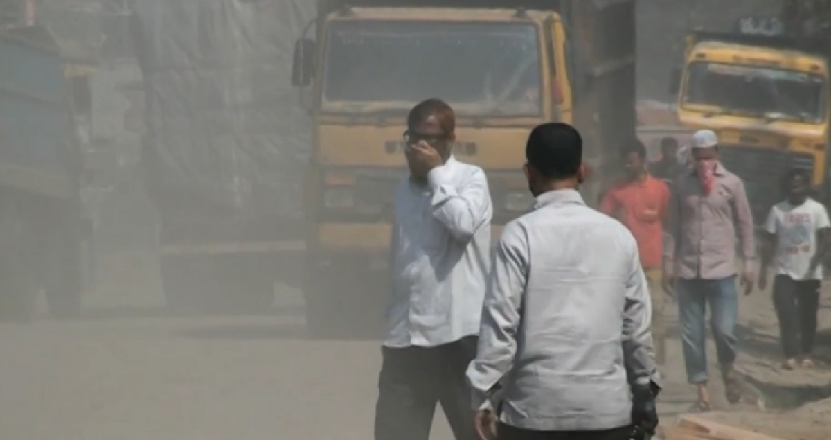 ধুলার কারণে নিশ্বাস নেয়াই হয়ে পড়েছে কষ্টকর।