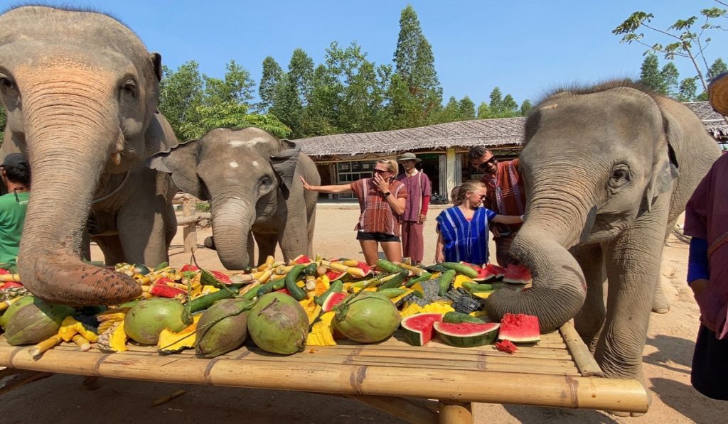 দেশটিতে ‘হাতি দিবস’ উপলক্ষ্যে প্রতিবছরই হয় এমন আয়োজন। বিশাল টেবিলজুড়ে সাজানো হয় হরেক রকমের ফলমূল আর শাক-সবজি। এত আপ্যায়নের কারণ, ঐতিহাসিকভাবে দেশটির মানুষের কাছে হাতির গুরুত্ব অনেক। তবে করোনার কারণে গত দুই বছর উৎসব ছিল সাদামাটা।
