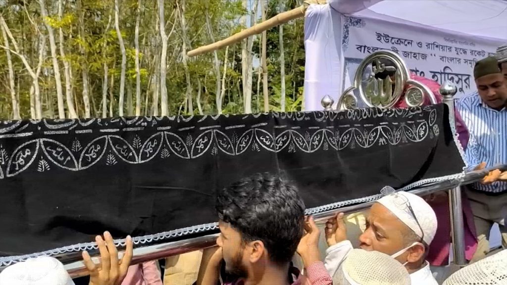 ইউক্রেন-রাশিয়া যুদ্ধ শুরু হলে ২৯ জন ক্রু নিয়ে অলভিয়া বন্দরে আটকা পড়ে ‘বাংলার সমৃদ্ধি’ জাহাজটি। ২ মার্চ বাংলাদেশ সময় রাত ৯টা ২০ মিনিটের দিকে জাহাজে রকেট হামলায় নিহত হন থার্ড ইঞ্জিনিয়ার হাদিসুর রহমান। গতকাল তার মরদেহ দেশে আনা হয়।