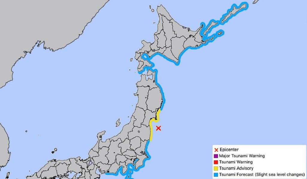 জাপানের মেটেরলজিকাল এজেন্সি জানিয়েছে, সকাল সাড়ে ১১টায় অনুভূত ভূমিকম্পের কারণে ১মিটার উচ্চতার সুনামি আঘাত হানতে পারে ফুকুশিমা উপকূলে। এজন্য, সমূদ্র উপকূল থেকে সরে গিয়ে নিরাপদ স্থানে আশ্রয় নেয়ার জন্য অনুরোধ জানিয়েছে সংস্থাটি।