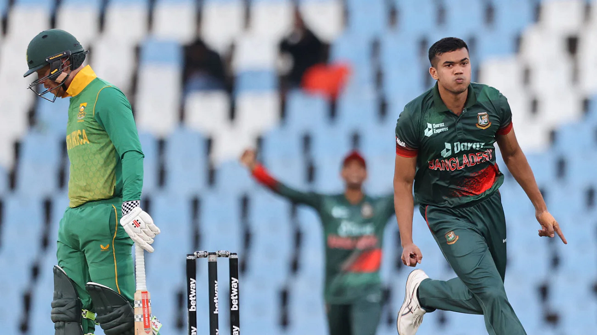 তাসকিন নিজের শেষ ওভারে ফন ডার ডুসেনের গুরুত্বপূর্ণ উইকেট নিলেন। প্রথম বলেই ফন ডার ডুসেন চড়াও হলেন তার ওপর। আর এর ফলেই ক্যাচ উঠে গেলো। আর সেটা লুফেটও নিলেন ইয়াসির রাব্বী।