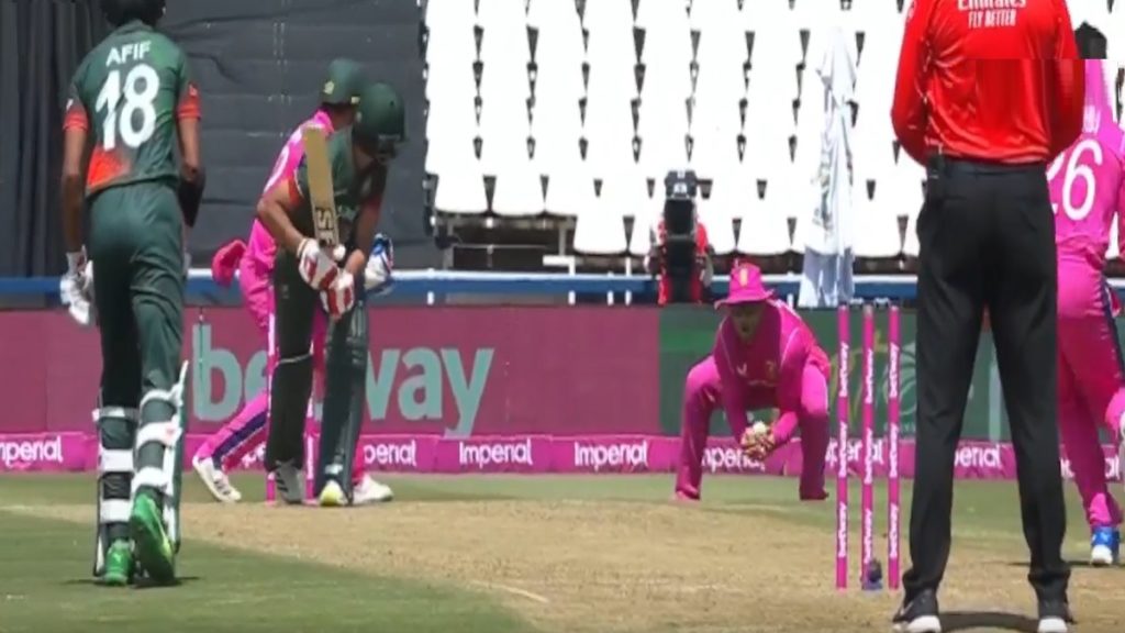 ৩৪ রানেই পড়ে গিয়েছিল বাংলাদেশের ৫ উইকেট। বড় রানের জন্য বিখ্যাত জোহানেসবার্গের ওয়ান্ডারার্স স্টেডিয়ামে এমন ব্যাটিং বিপর্যয় থেকে বভাংলাদেশকে কিছুটা হলেও উদ্ধার করেছে আফিফ ও মাহমুদউল্লাহর ৬০ রানের জুটি। ৮৭ বল স্থায়ী এই জুটিতে দুই ব্যাটার দেখিয়েছেন, উইকেট এখনও ব্যাটিংয়ের জন্য দারুণ উপযোগী। কিন্তু উইকেটে জমে যাওয়া মাহমুদউল্লাহ পারেননি বড় রান করতে। উইকেট ঠিকভাবে পড়ে ব্যাটে যখন অনায়াসে বল আনতে পারছিলেন, তখনই তাবরাইজ শামসির পাতা ফাঁদে দিলেন পা। লেগ স্লিপে ক্যাচ দিয়ে চায়নাম্যান শামসির শিকার হয়ে ফেরেন তিনি ২৫ রান করে। অন্যদিকে, দারুণ ব্যাট করছেন আফিফ। ৪১ রানে অপরাজিত থাকা এই বাঁহাতির সাথে ক্রিজে এখন আছেন মেহেদি হাসান মিরাজ।