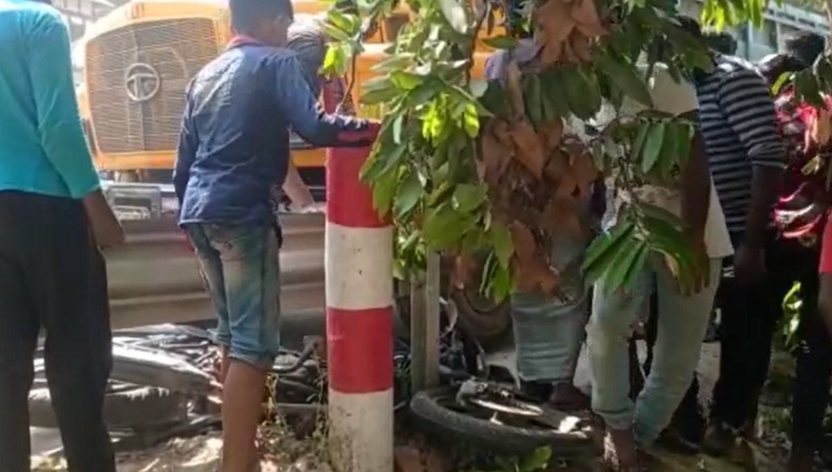 ঘাতক ট্রাক ও নিহত সাবেক সেনা সদস্যের মোটরসাইকেল।