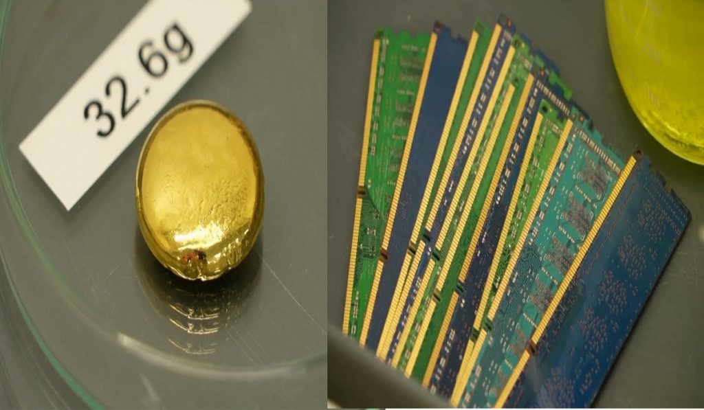 কোনো খনি নয়, স্বর্ণ সংগ্রহ করা হচ্ছে মোবাইল, কম্পিউটারসহ বিভিন্ন গ্যাজেটের যন্ত্রাংশ থেকে। তৈরি করা হচ্ছে স্বর্ণমুদ্রাও। এমন ঘটনাই ঘটছে ব্রিটেনের ওয়েলসে। স্বর্ণমুদ্রা তৈরির জন্য বিখ্যাত প্রতিষ্ঠান দ্যা রয়েল মিন্ট, ই-বর্জ্য থেকে তৈরি করছে এসব কয়েন। তবে সেসব গবেষণাগার থেকে একেবারেই ভিন্ন এটি। কারণ এখানে স্বর্ণমুদ্রা তৈরি করা হচ্ছে, ফেলে দেয়া যন্ত্রাংশ বা ই-বর্জ্য প্রক্রিয়াজাত করে।