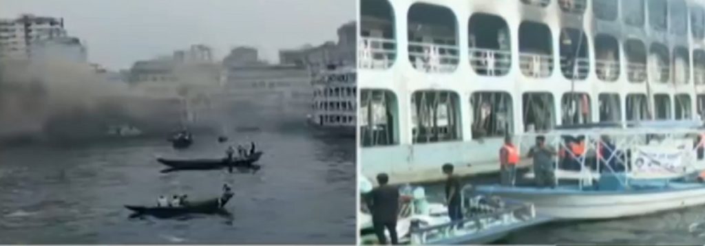 রোববার (২৭ মার্চ) সকাল বেলা ১১টার দিকে লঞ্চের দোতলার একটি ভিআইপি কেবিন থেকে আগুনের সূত্রপাত হয়। ফায়ার সার্ভিসের ২ ঘণ্টার চেষ্টায় দুপুর ১টা নাগাদ আগুন কিছুটা নিয়ন্ত্রণে এসেছে।