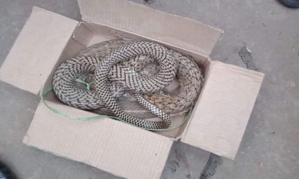 ফরিদপুরের নগরকান্দা উপজেলার রামনগর ইউনিয়নের চেয়ারম্যান মো. কাইমুদ্দিন মন্ডলকে বাক্সবন্দি সাপ উপহার পাঠানোর ঘটনা ঘটেছে। সাপটি লম্বায় ৮ হাত। প্রত্যক্ষদর্শীদের কেউ বলছেন দাঁড়াশ সাপ। আবার অনেকেই বলেন গোখরা সাপ। সাপ দেখে অজ্ঞান হয়ে পড়েন চেয়ারম্যানের এক কর্মচারী।