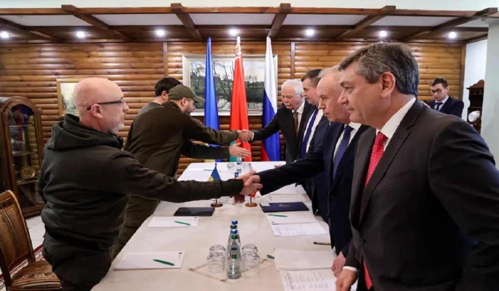 ইস্তাম্বুলে শুরু হওয়া শান্তি আলোচনা নিয়ে চলছে নানা জল্পনা-কল্পনা। দ্য ফিনান্সিয়াল টাইমসের প্রতিবেদনে বলা হয়েছে, ইউক্রেন থেকে ফ্যাসিজম ও নাৎসিকরণ নির্মূলের যে দাবি জানিয়ে আসছিল ক্রেমলিন, সে অবস্থান থেকে সরে আসার ব্যাপারে সম্ভাবনা তৈরি হয়েছে। সেই সাথে, অস্ত্রবিরতির ক্ষেত্রে ইউক্রেনের ‘আত্মরক্ষামূলক সামরিক জোট’ ন্যাটোতে যোগ দেয়ার আকাঙ্ক্ষা ত্যাগের দাবিও জানানো হয়েছে রুশদের পক্ষ থেকে। জানানো হয়েছে, এই দাবিসমূহ মেনে নেয়া হলে ইউক্রেনীয়দের নিরাপত্তা বিধানের ব্যাপারে নিশ্চয়তা দিতে সম্মতি জানাবে ক্রেমলিন।