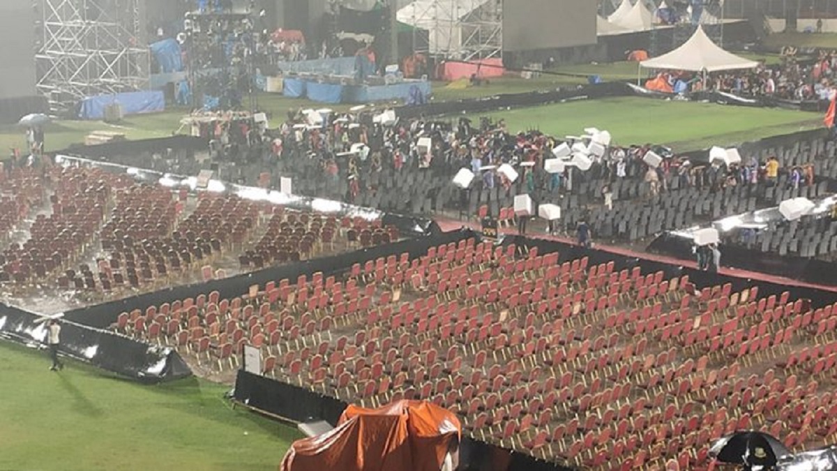 অন্ধকার দূর করতে স্টেডিয়ামে ফ্লাড লাইট জ্বালানো হয়েছে। আয়োজক সূত্রে জানা গেছে, বৃষ্টি থেমে গেলেই মঞ্চে আসবেন অস্কারজয়ী সুরকার এ আর রাহমান।