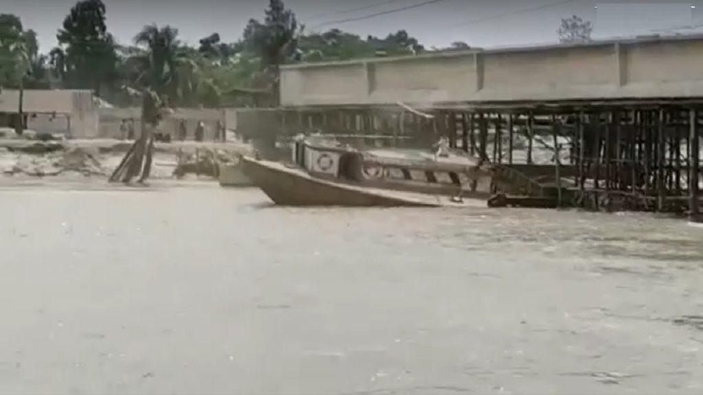 বলগেটের আঘাতে ব্রিজের স্টেজিং ভেঙে যাওয়ার দৃশ্য