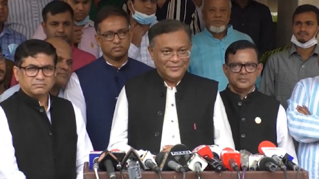 তিনি বলেন, বিএনপি বলে বেড়াচ্ছে নিরপেক্ষ সরকার না হলে তারা নির্বাচনে আসবে না। বাংলাদেশের সংবিধান অনুযায়ী আর কোনো তত্ত্বাবধায়ক সরকার হবে না। নির্বাচন সরকারের অধীনে হয় না। নির্বাচন হয় নির্বাচন কমিশনের অধীনে। নির্বাচন কমিশনার স্বাধীন। সুতরাং, স্বাধীন নির্বাচন কমিশনের অধীনেই নির্বাচন অনুষ্ঠিত হবে। তাই আগামী নির্বাচনের ট্রেনে উঠবে কি উঠবে না সেটি বিএনপির সিদ্ধান্তের ব্যাপার। নির্বাচনের ট্রেন কারো জন্য অপেক্ষা করবে না।