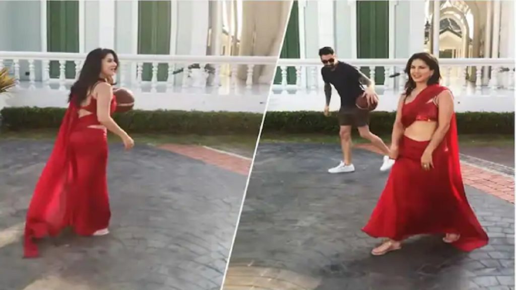পরনে লাল শাড়ি পায়ে ফ্ল্যাট জুতো। সেই পোশাকেই প্রাণপন বল বাস্কেটে ফেলার চেষ্টা। খেলার মুডে ক্যামেরাবন্দি অভিনেত্রী সানি লিওনি। আর খেলার সঙ্গী? সানির স্বামী ড্যানিয়েল ওয়েবার।