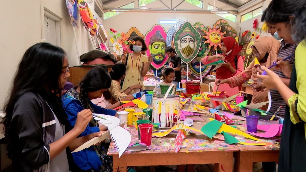 চারুকলার শিক্ষার্থীরা জানালো, বেতের কাঠামোর কাজ এগিয়েছে অনেকখানি। তারপরই লাগবে রঙের ছোঁয়া। মুখোশ আর কাগজের পাখিতে খেলা করবে রঙ। উঠে আসবে বাঙালির ঐতিহ্যের গল্প। রিকশা পেইন্টকে দেয়া হচ্ছে প্রাধান্য।
