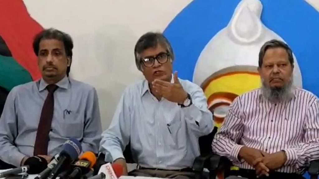 সংবাদ সম্মেলনে বক্তব্যরত ঢাকা বিশ্ববিদ্যালয়ের প্রো-ভিসি ড. আব্দুস সামাদ।