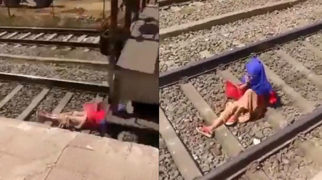 রেললাইনের মাঝে শুয়েছিলেন এক তরুণী। সেই অবস্থায়ই তার ওপর দিয়ে চলে যায় একটি মালবাহী ট্রেন। এতেও কোনো বিকার নেই সেই তরুণীর। ফোনে কথা বলতে বলতে উঠে আসলে উপরে।
