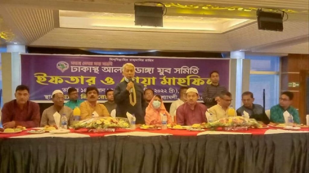 ঢাকায় কর্মরত ফরিদপুরের আলফাডাঙ্গা উপজেলার যুবকদের নিয়ে গঠিত ঢাকাস্থ আলফাডাঙ্গা যুব সমিতির ইফতার ও দোয়া মাহফিল অনুষ্ঠিত হয়েছে। শনিবার (১৬ এপ্রিল) সন্ধ্যায় রাজধানীর একটি রেস্তোরাঁর এ ইফতার ও দোয়া মাহফিল অনুষ্ঠিত হয়। এতে আলফাডাঙ্গা উপজেলার বিভিন্ন শ্রেণি-পেশার প্রায় ৩০০ জন অংশ নেন।