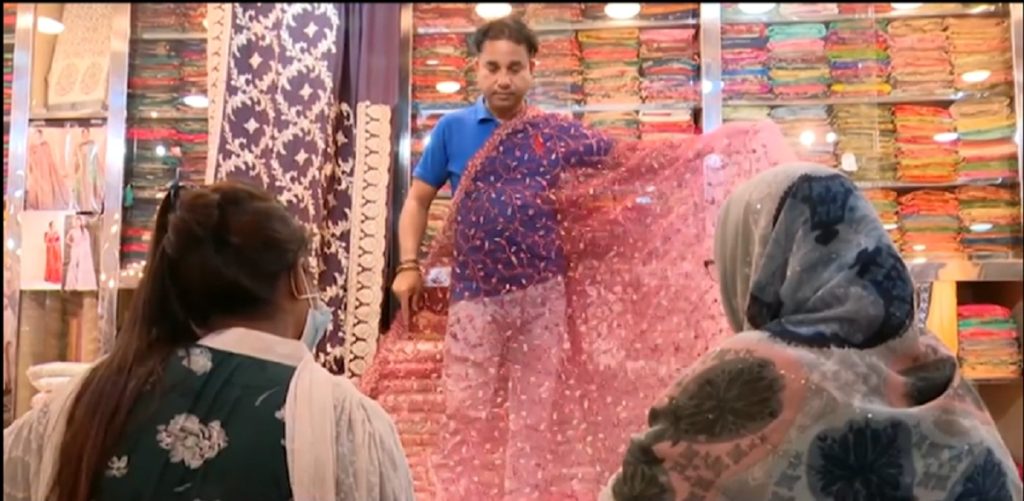 ব্যস্ততা বেড়েছে মিরপুরের বেনারসি পল্লীতে। এখানে যেমন পাওয়া যাবে দেশীয় শাড়ির অন্যান্য সব ডিজাইন, তেমন মিলবে বিদেশি শাড়ির নানা ধরন। গত দু’বছর করোনার জন্য ভালো বেচা-বিক্রি না হলেও এবার ব্যবসায়ীদের প্রত্যাশা ক্ষতি কাটিয়ে ওঠার। বিপুল কালেকশন আর সাধ্যের মধ্যে দাম থাকায় মিরপুরের বেনারসি পল্লীকে প্রাধান্য দিচ্ছেন ক্রেতারা।
