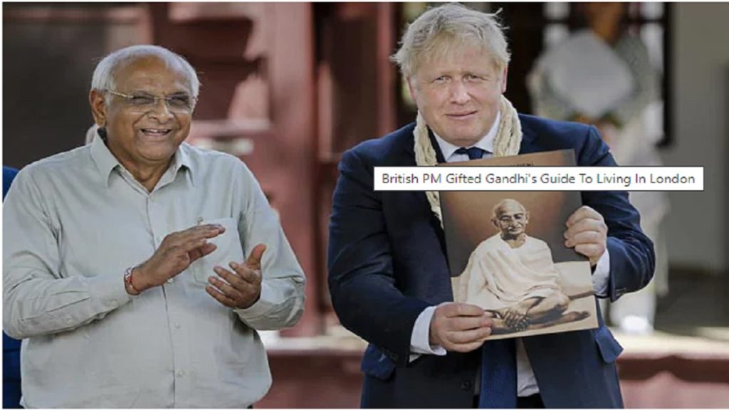 যুক্তরাজ্যের প্রধানমন্ত্রী বরিস জনসন তার দু’দিনের ভারত সফরকালে মহাত্মা গান্ধীর লেখা বই ‘গাইড টু লন্ডন’ উপহার পেয়েছেন। ভারতের আহমেদাবাদের সবরমতি আশ্রম পরিদর্শনকালে তিনি এ উপহার পান। গুজরাটের মুখ্যমন্ত্রী ভূপেন্দ্র প্যাটেল আশ্রম পরিদর্শনের সময় জনসনের সঙ্গে উপস্থিত ছিলেন। গাইড টু লন্ডন, মহাত্মা গান্ধীর লেখা প্রথম কয়েকটি বইয়ের একটি; যা কখনো প্রকাশিত হয়নি। খবর এনডিটিভির।